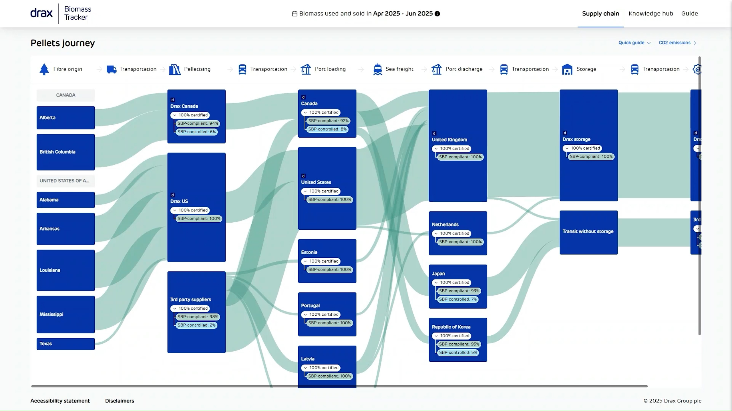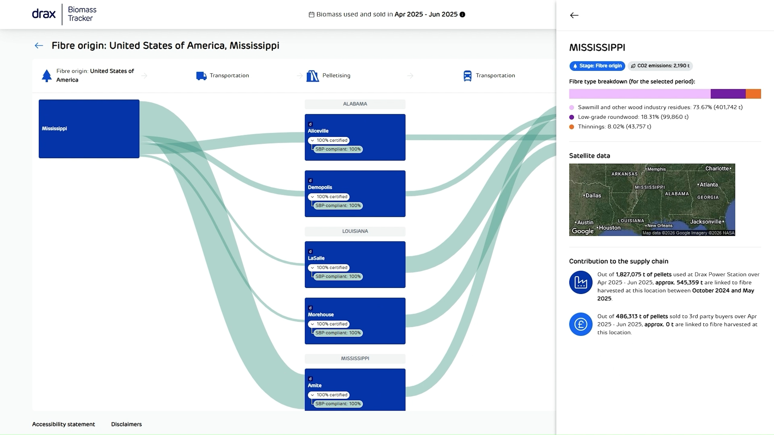 The preselected quarterly time period shown at the top of the chart refers to when the biomass was either used at Drax Power Station or sold to third party buyers. The earlier stages in the supply chain, such as fibre sourcing, pelletising, and transportation, took place prior to this period.