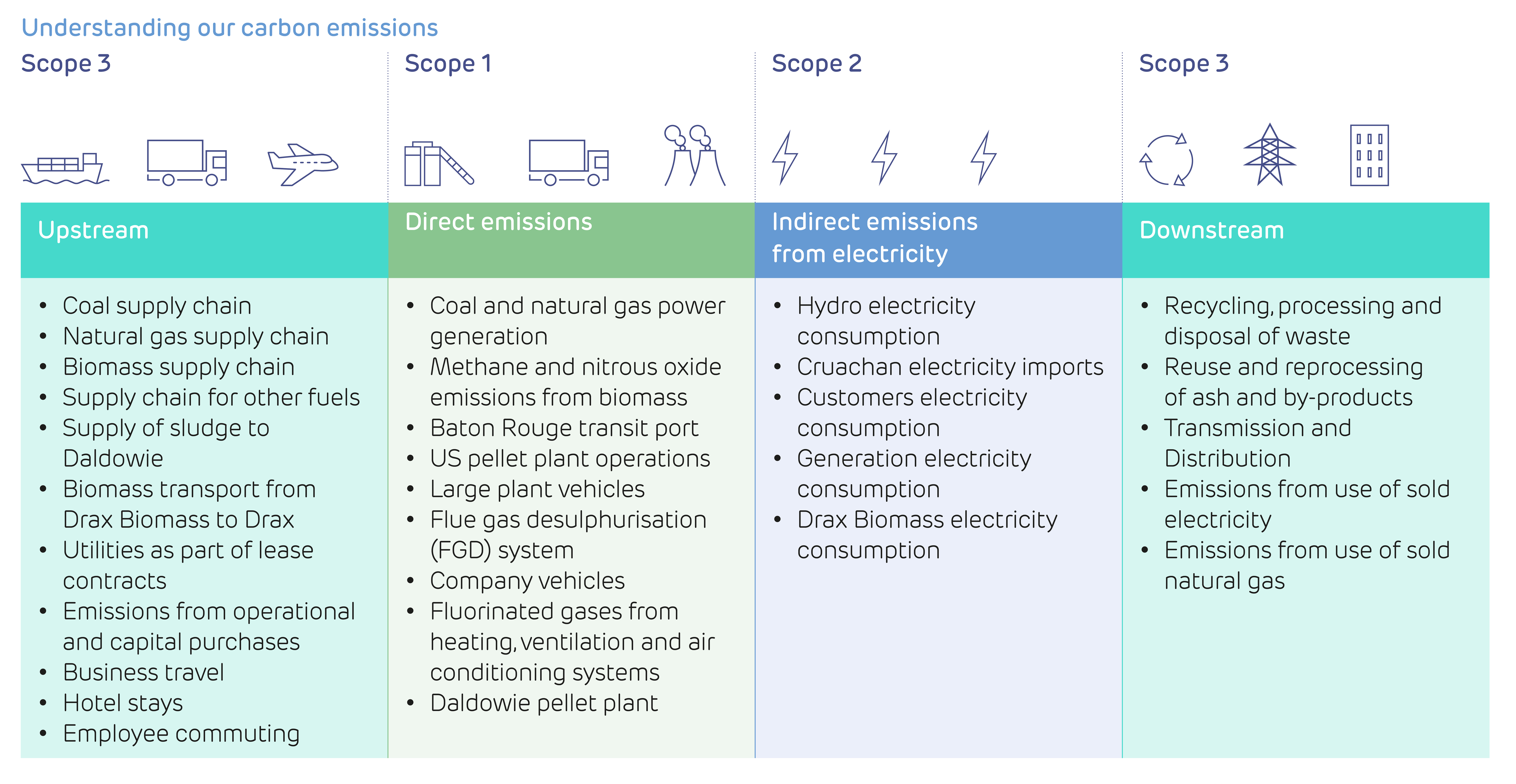 Note: Carbon emissions are reported against a criterion of operational control. Carbon emissions are reported in units of carbon dioxide equivalent (CO2e) and include all greenhouse gases as required by the GHG Protocol. A materiality threshold of 75tCO2e/year is applied. For the basis of reporting see www.drax.com/sustainability/approach/#assurance-statement