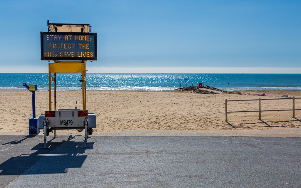 Top image caption: sourced from Adobe Stock. Branksome Chine Beach, Poole, Dorset, UK during COVID-19 – 1st April 2020.