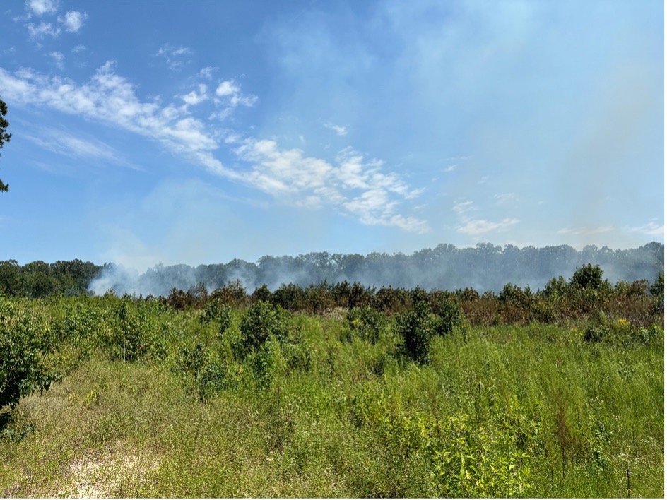Image caption 1: A growing season burn conducted by the Piney Hills PBA in August 2024.
